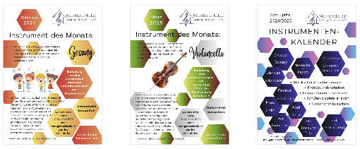 Die Idee entwickelte ich im Rahmen des berufsbegleitenden Lehrgangs „Führung und Leitung einer Musikschule“ an der Bundesakademie für musikalische Jugendbildung in Trossingen. Am ehesten vergleichbar ist die Idee mit dem digitalen Adventskalender, den manche Musikschulen im Dezember anbieten. Wer da auf eines der 24 Türchen klickt, kann einen musikalischen Beitrag aus der Musikschule – eingespielt von den Schülerinnen und Schülern der Musikschule – erklingen lassen. Hinter unserem Kalender steckt die Idee, die Vielfalt der aktuell 25 Instrumente aufzuzeigen, die an unserer Schule (zuzüglich Elementarer Musikerziehung) gelehrt werden. Ziel ist es, Interessierten die Entscheidung für ein neues Instrument zu erleichtern und gleichzeitig die Begeisterung für die Musik zu fördern.